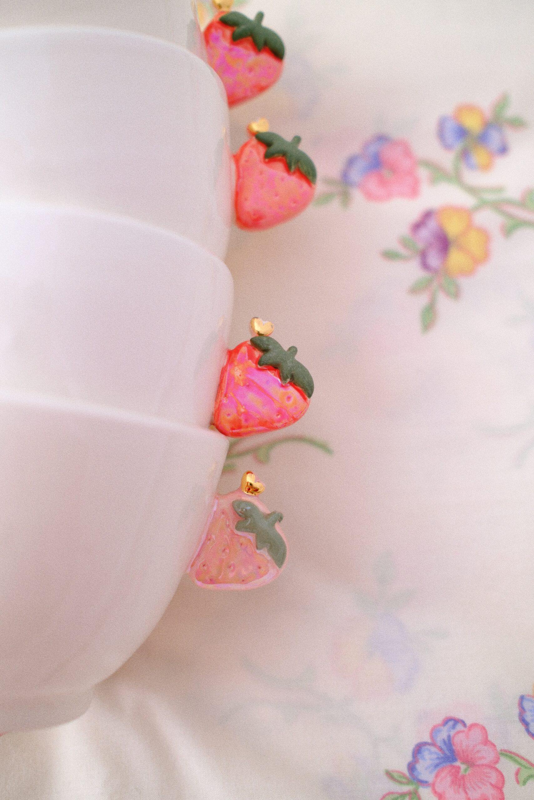 Si votre pièce contient un décor à l’or ou à la nacre, cela veut dire qu’elle est passée une troisième fois au four ! Il s’agit d’or véritable 22k que je peins a la main.