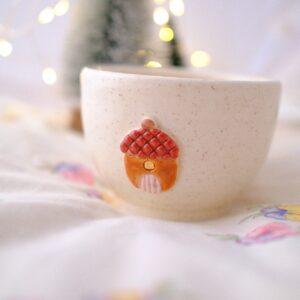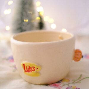 Cette pièce a été tournée sur le tour par mes petites mains ! Elle a ensuite séché pendant plusieurs jours sur mes étagères avant d’aller au four pour la première cuisson (dite « biscuit ») de 24 heures. Je l’ai ensuite décorée avec mes engobes, puis émaillée pour la deuxième cuisson de 24 heures également !