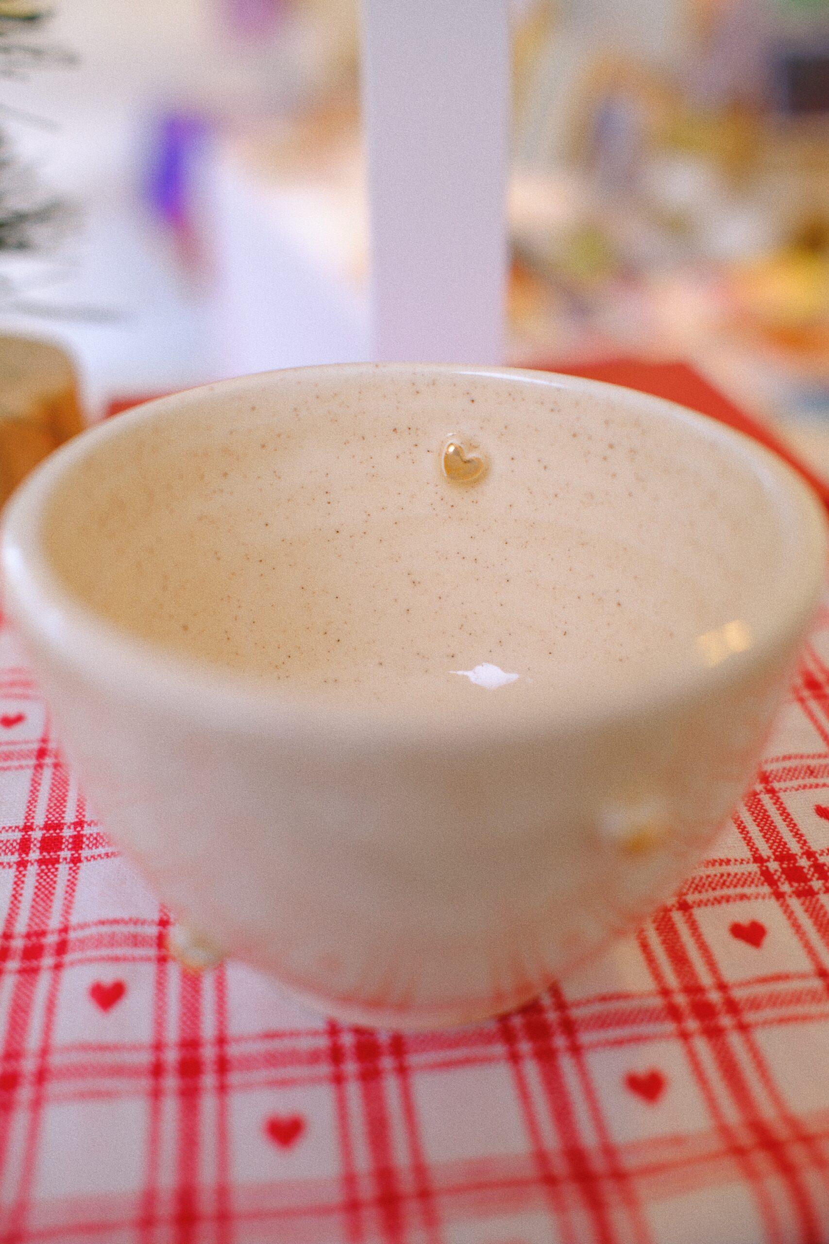 Si votre pièce contient un décor à l’or ou à la nacre, cela veut dire qu’elle est passée une troisième fois au four ! Il s’agit d’or véritable 22k que je peins a la main.