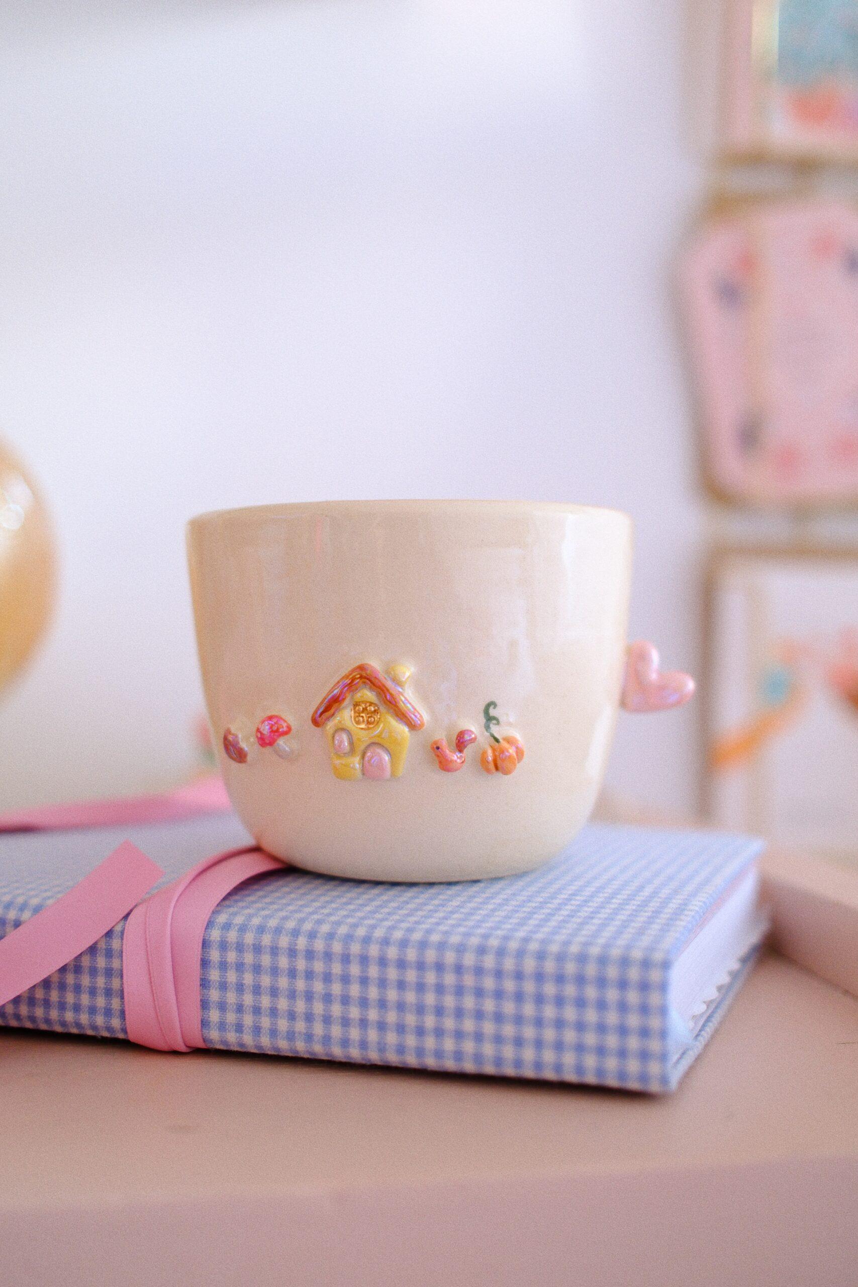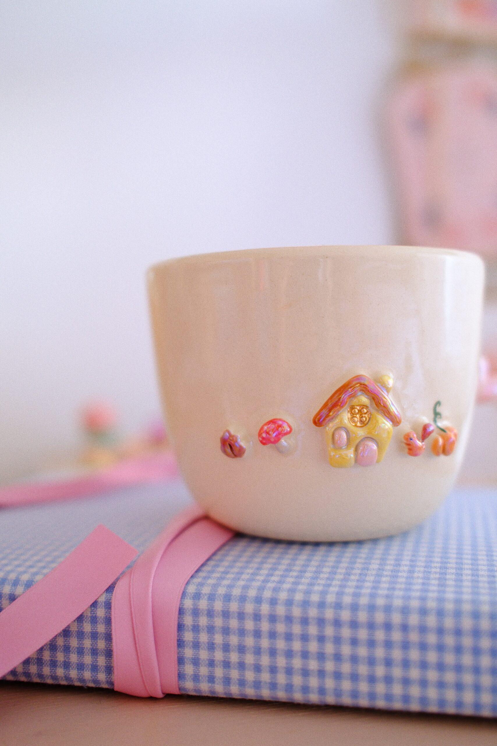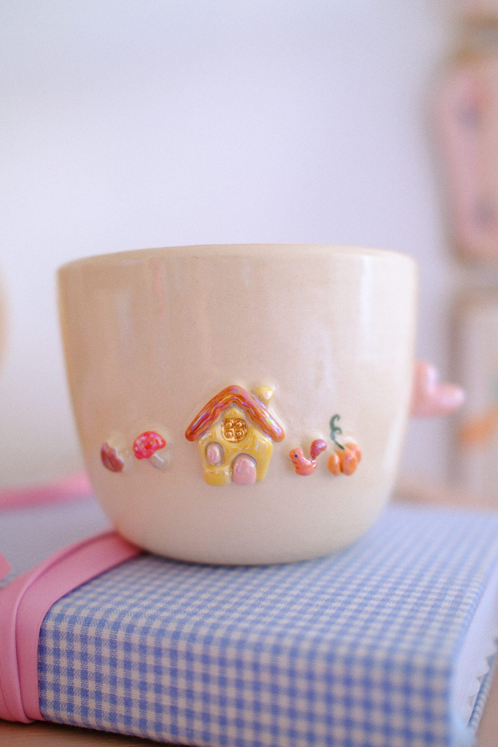 Cette pièce a été tournée sur le tour par mes petites mains ! Elle a ensuite séché pendant plusieurs jours sur mes étagères avant d’aller au four pour la première cuisson (dite « biscuit ») de 24 heures. Je l’ai ensuite décorée avec mes engobes, puis émaillée pour la deuxième cuisson de 24 heures également !