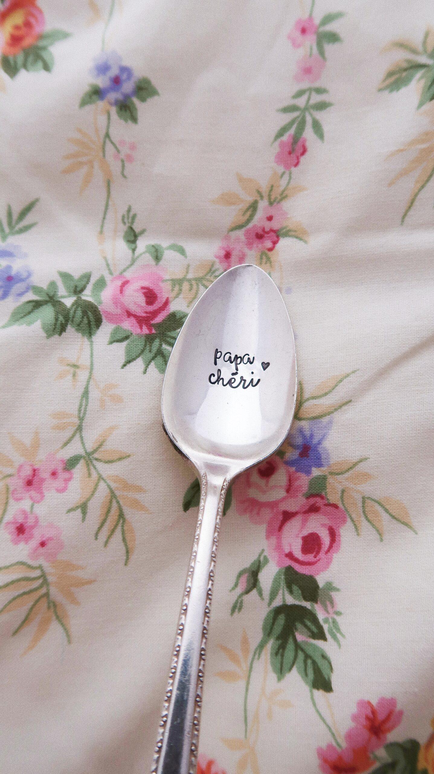 CHOOSE – Cuillère à dessert gravée vintage : papa chéri