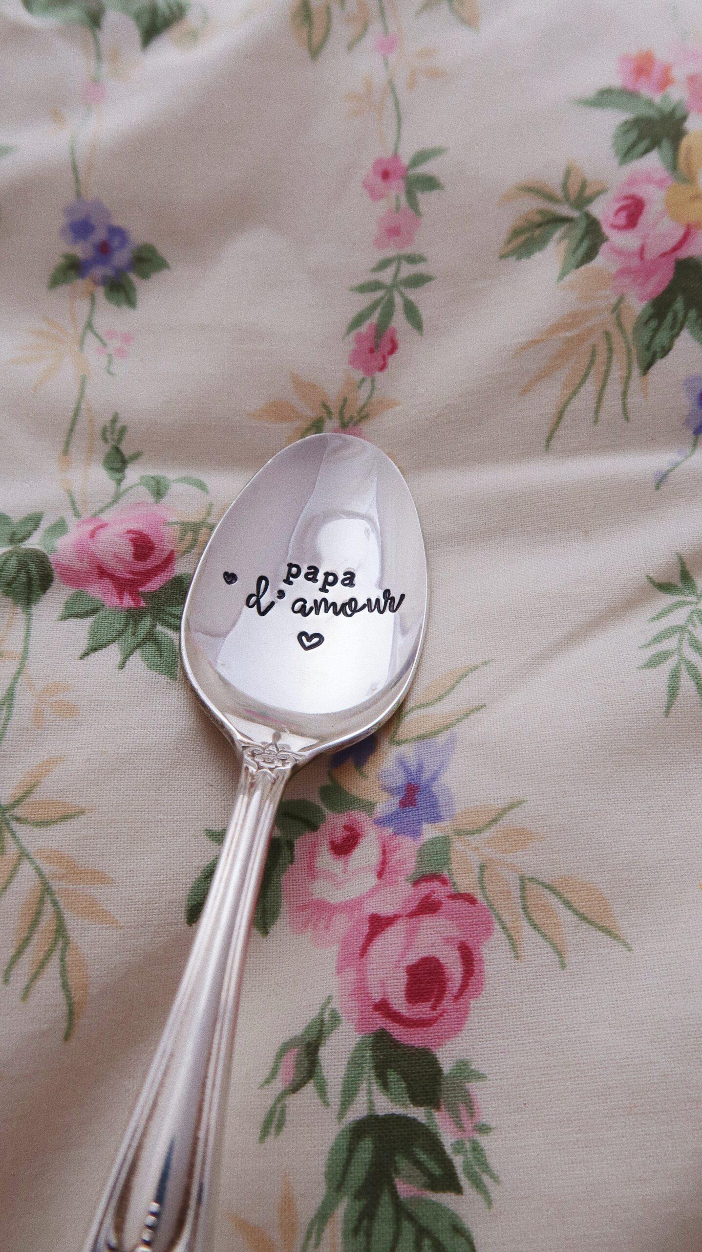 choose – Cuillère à dessert gravée vintage : papa d’amour