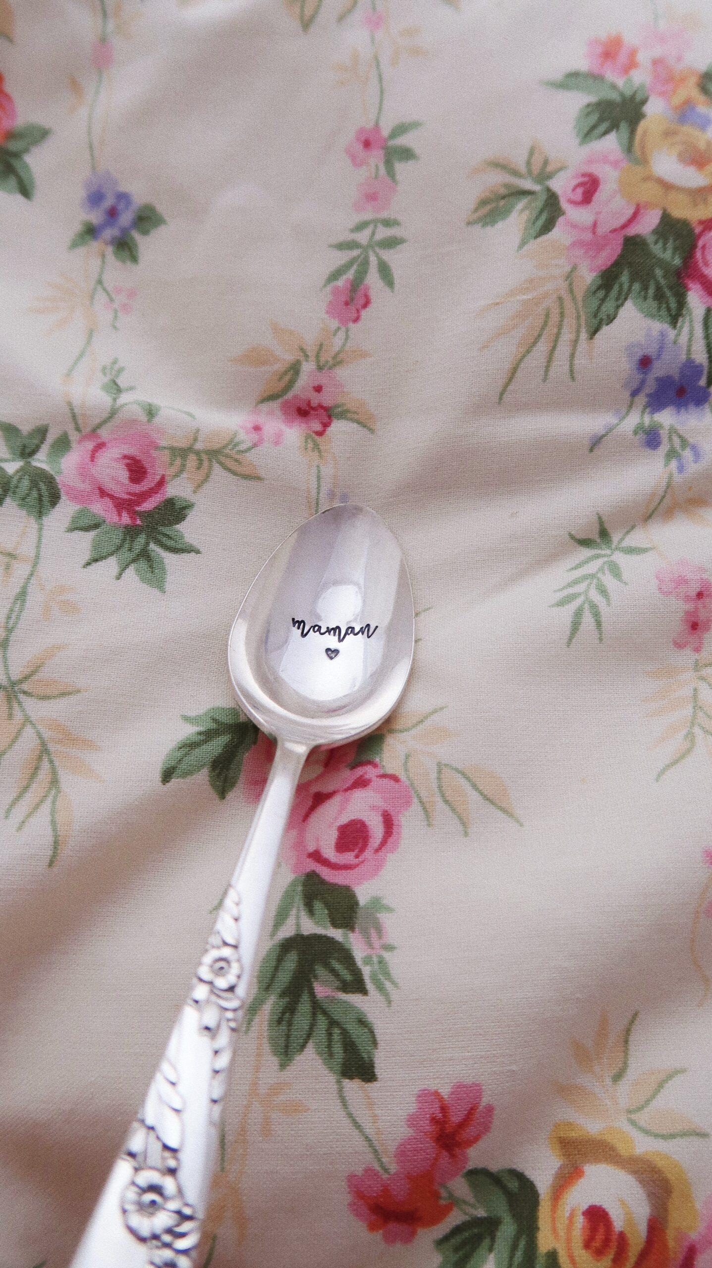 L’encre que j’utilise afin de faire ressortir le message est non toxique. Mes petites cuillères sont destinées à un usage occasionnel, la gravure durera toute la vie mais l’encre finira par s’atténuer : évitez donc le lave vaisselle autant que possible !