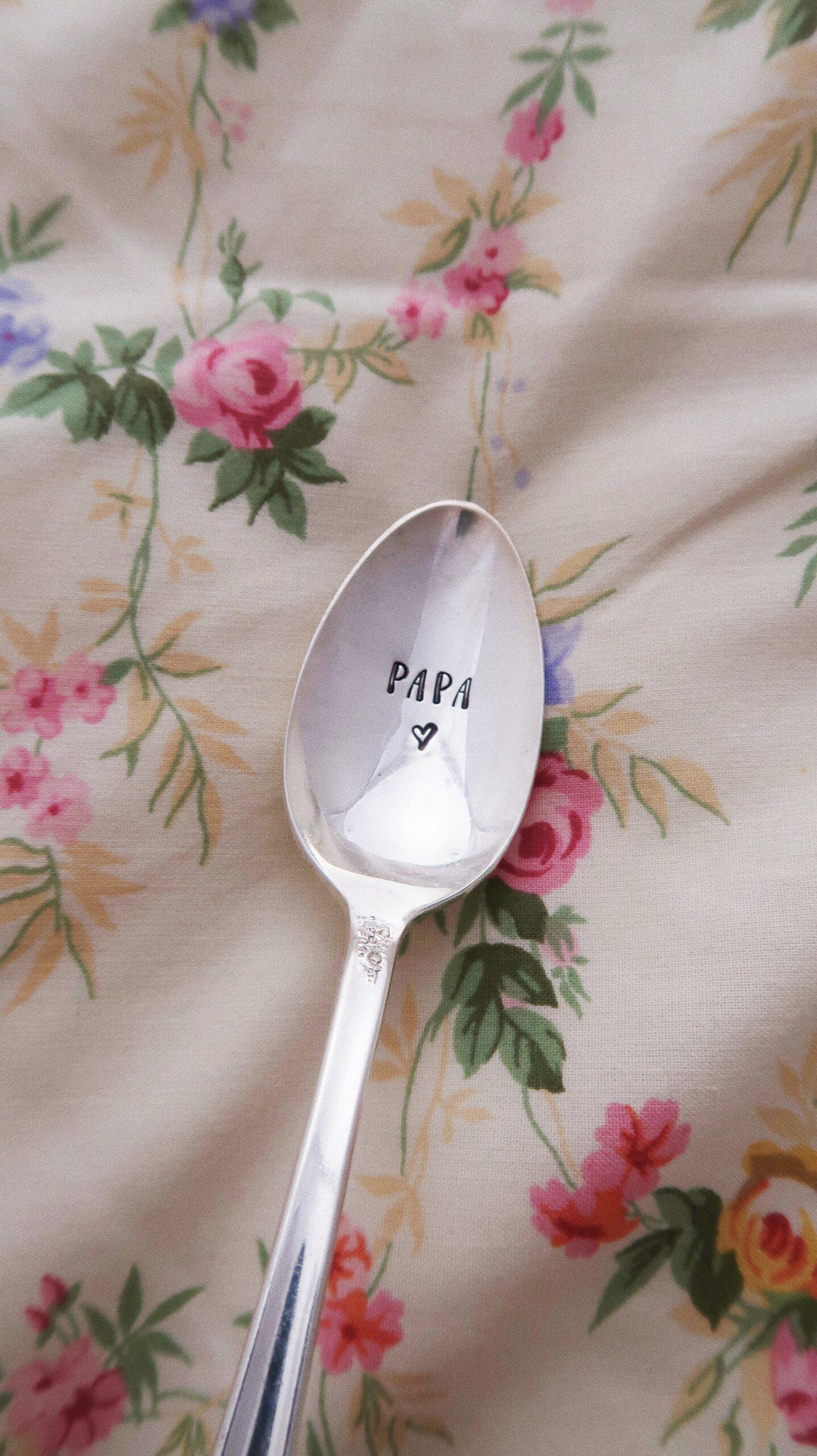 CHOOSE – Cuillère à dessert gravée vintage : papa