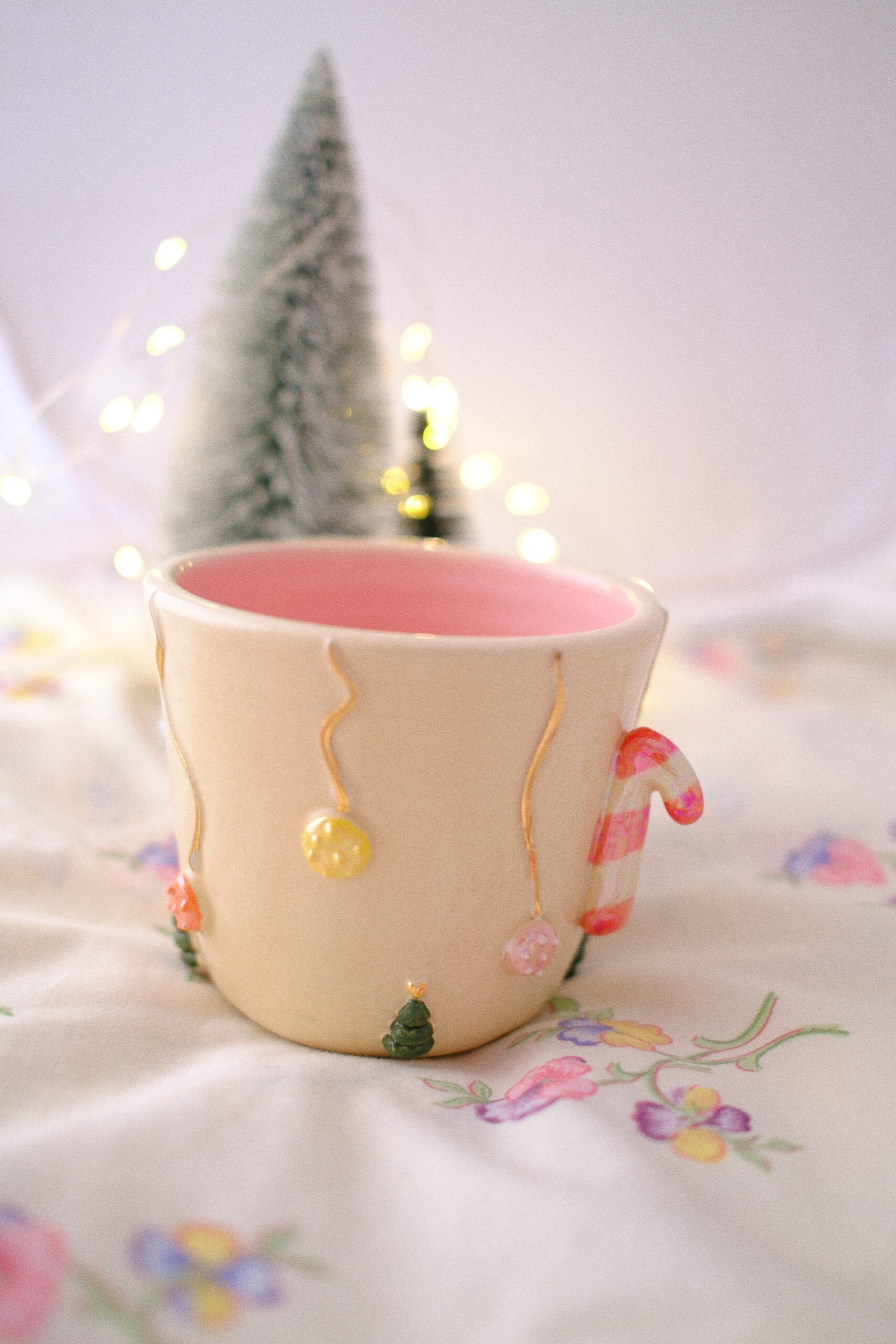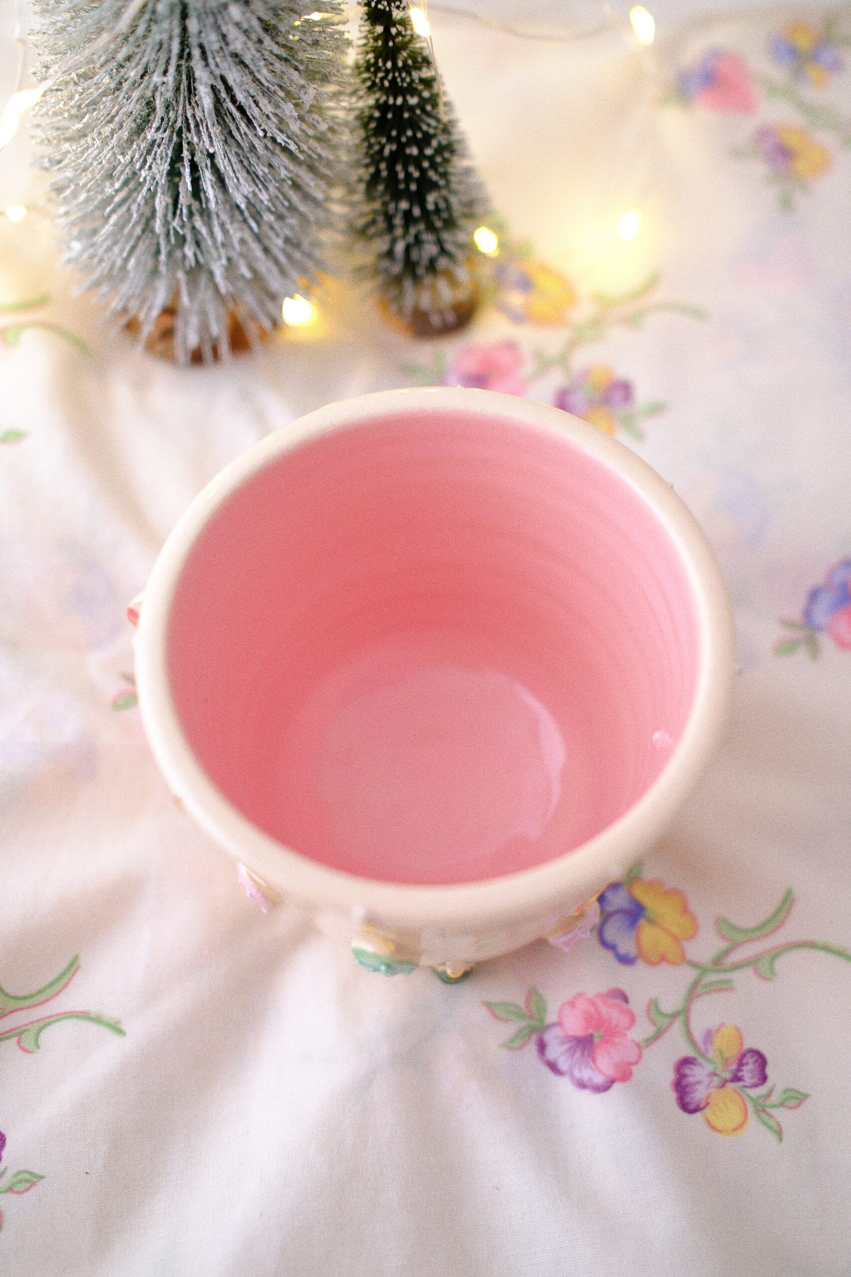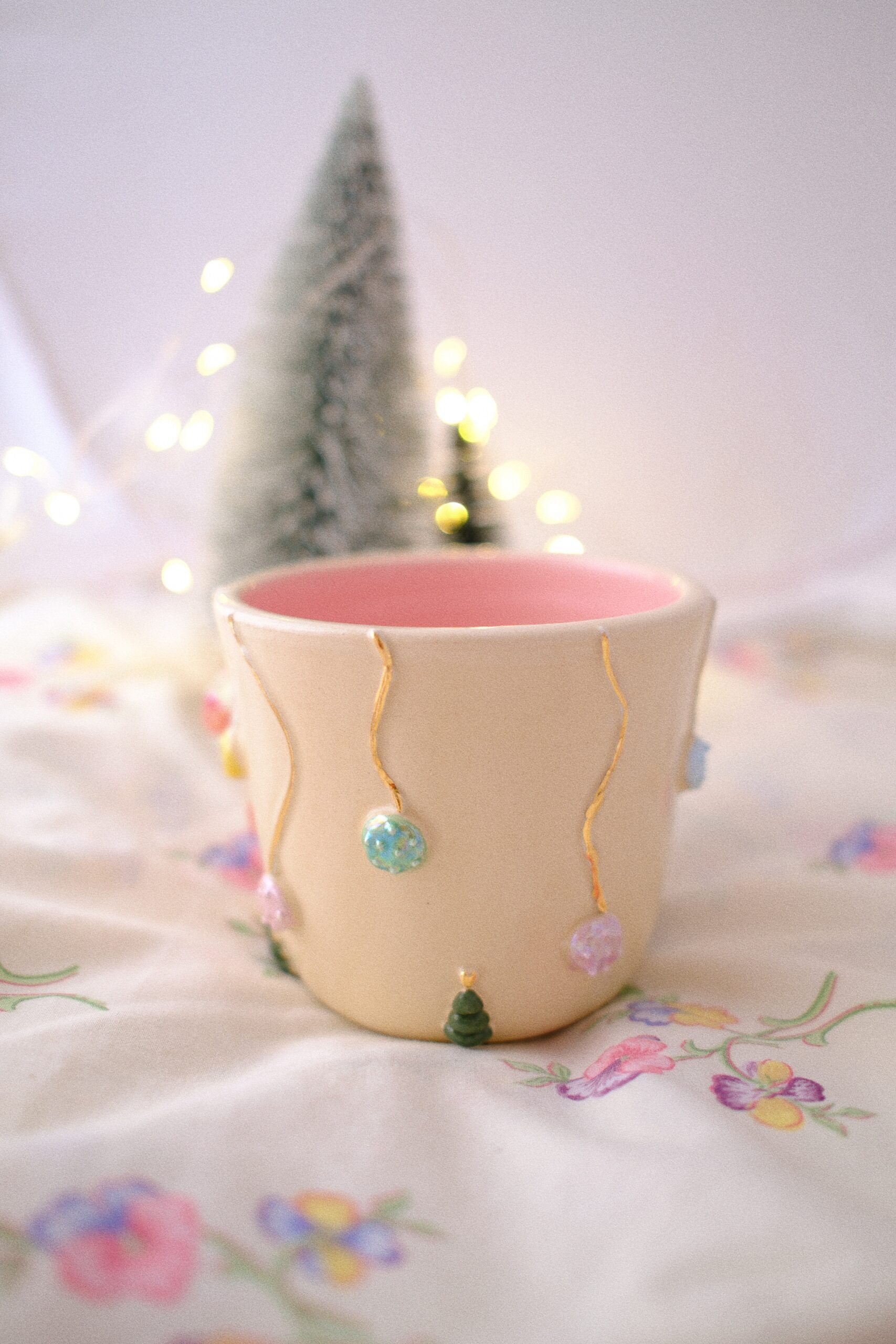 Cette pièce a été tournée sur le tour par mes petites mains ! Elle a ensuite séché pendant plusieurs jours sur mes étagères avant d’aller au four pour la première cuisson (dite « biscuit ») de 24 heures. Je l’ai ensuite décorée avec mes engobes, puis émaillée pour la deuxième cuisson de 24 heures également !