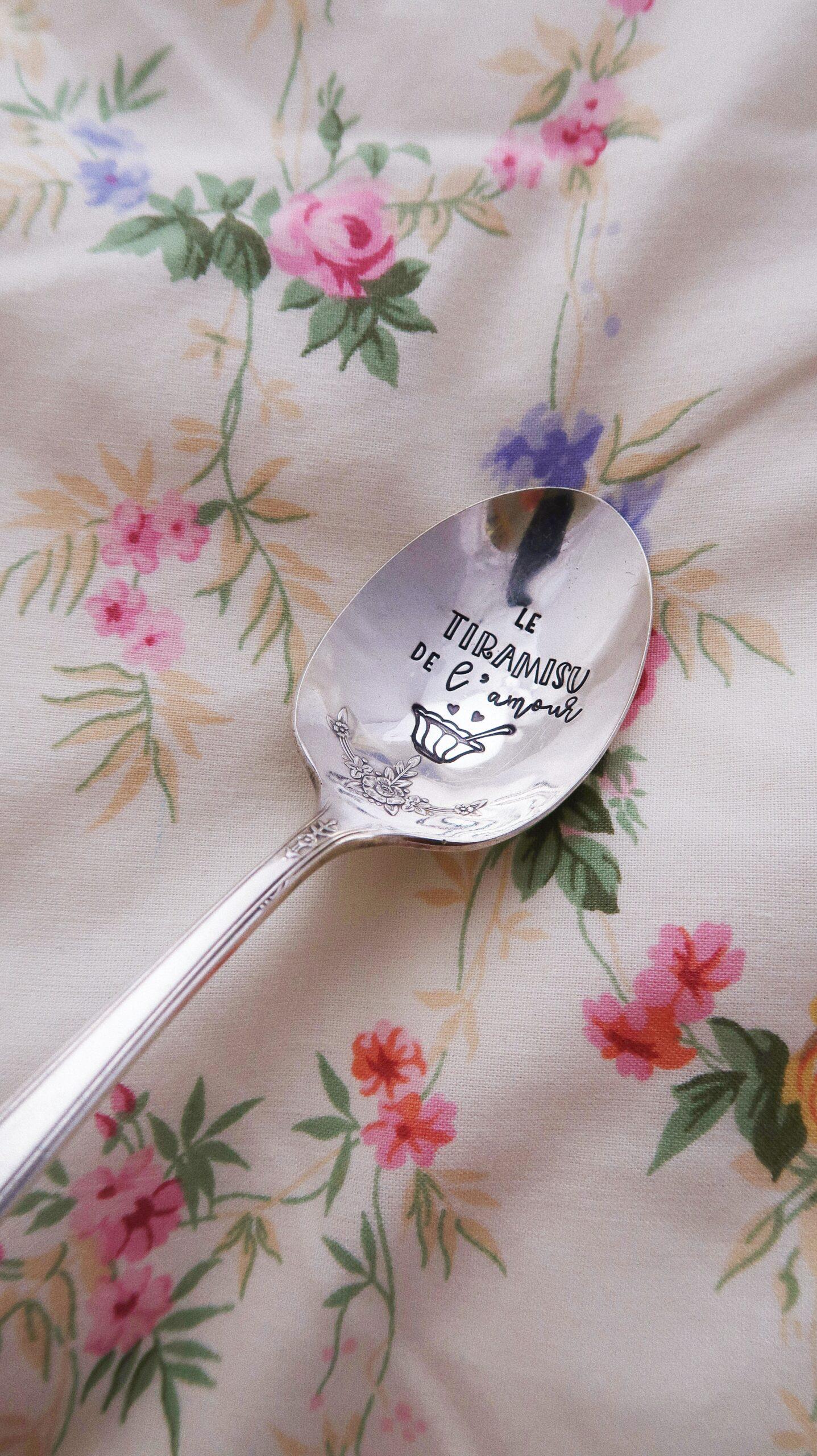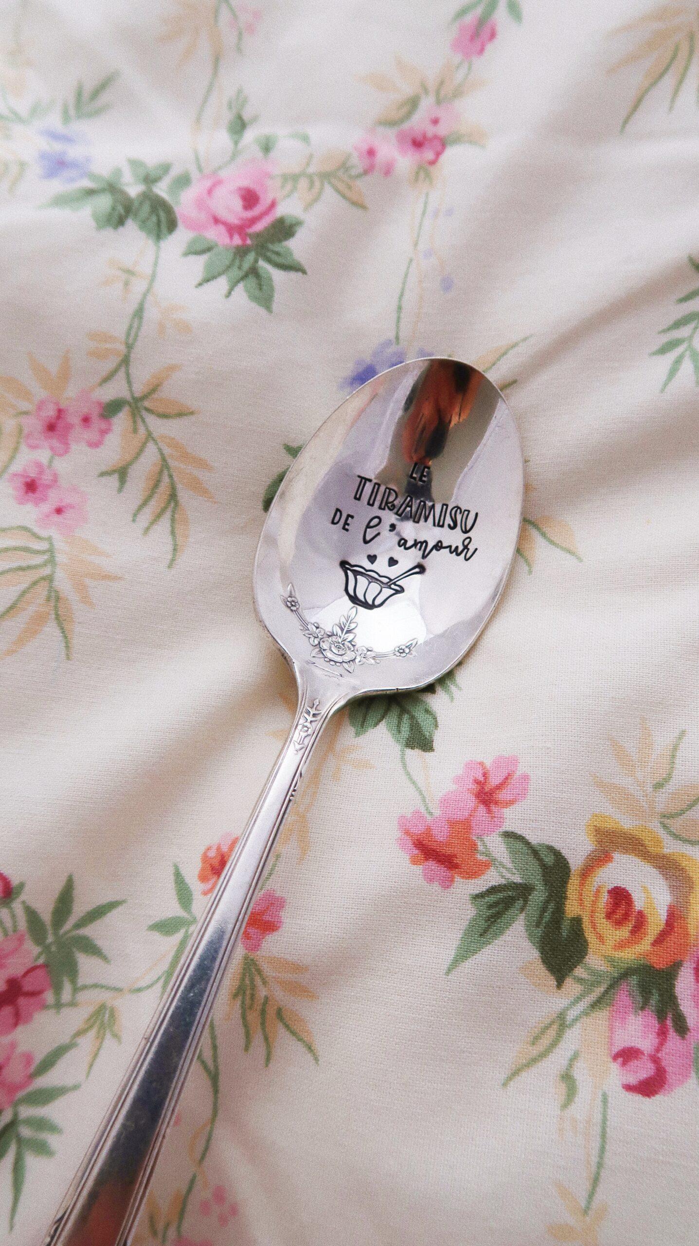 CHOOSE – Cuillère à dessert gravée vintage : le tiramisu de l’amour