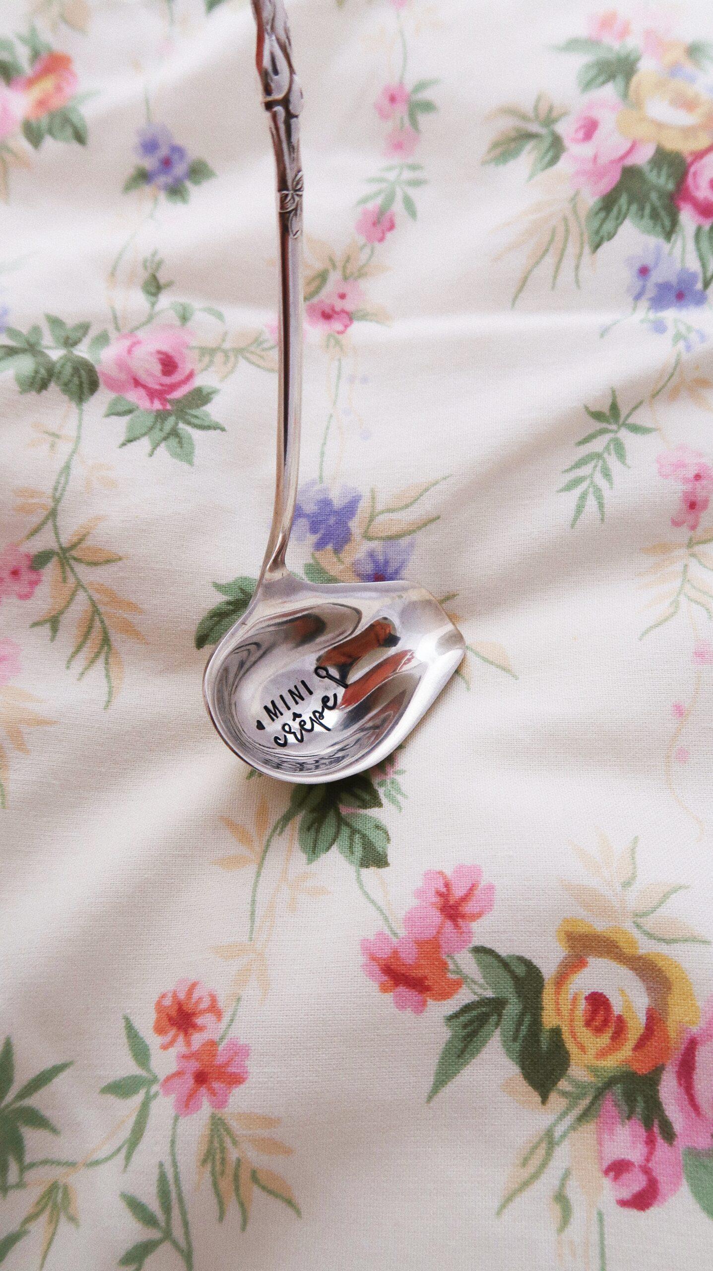 CHOOSE – minuscule petite louche gravée vintage : mini crêpe