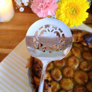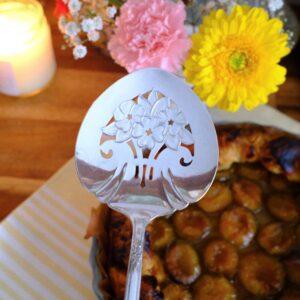 Pelle à tarte fleurie vintage en métal argenté non gravée